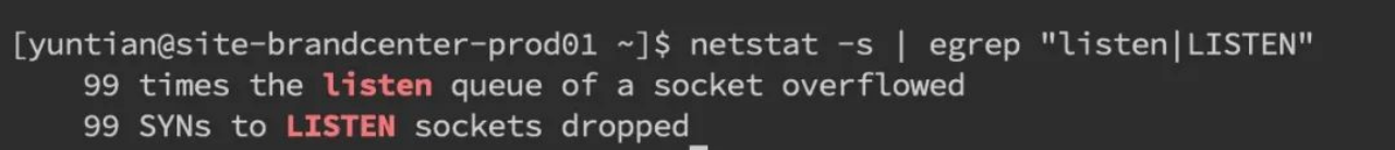 如上图所示,overflowed表示全连接队列溢出的次数,sockets dropped表示半连接队列溢出的次数。