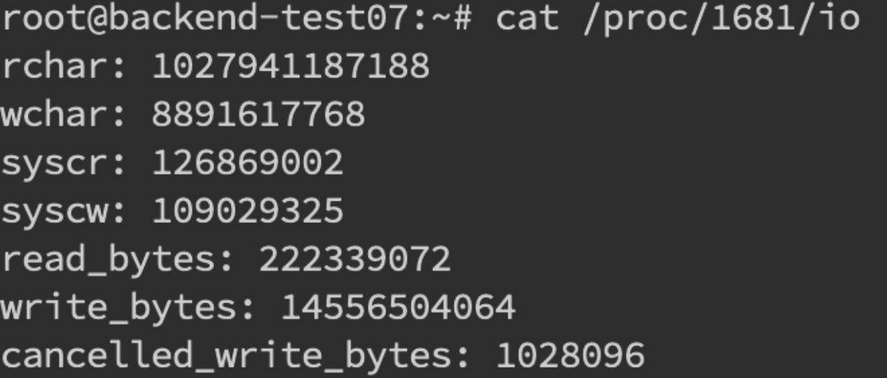 找到pid之后就可以看这个进程具体的读写情况cat /proc/pid/io