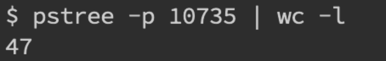 线程的话太多而且不被及时gc也会引发oom,大部分就是之前说的unable to create new native thread。除了jstack细细分析dump文件外,我们一般先会看下总体线程,通过pstreee -p pid |wc -l。