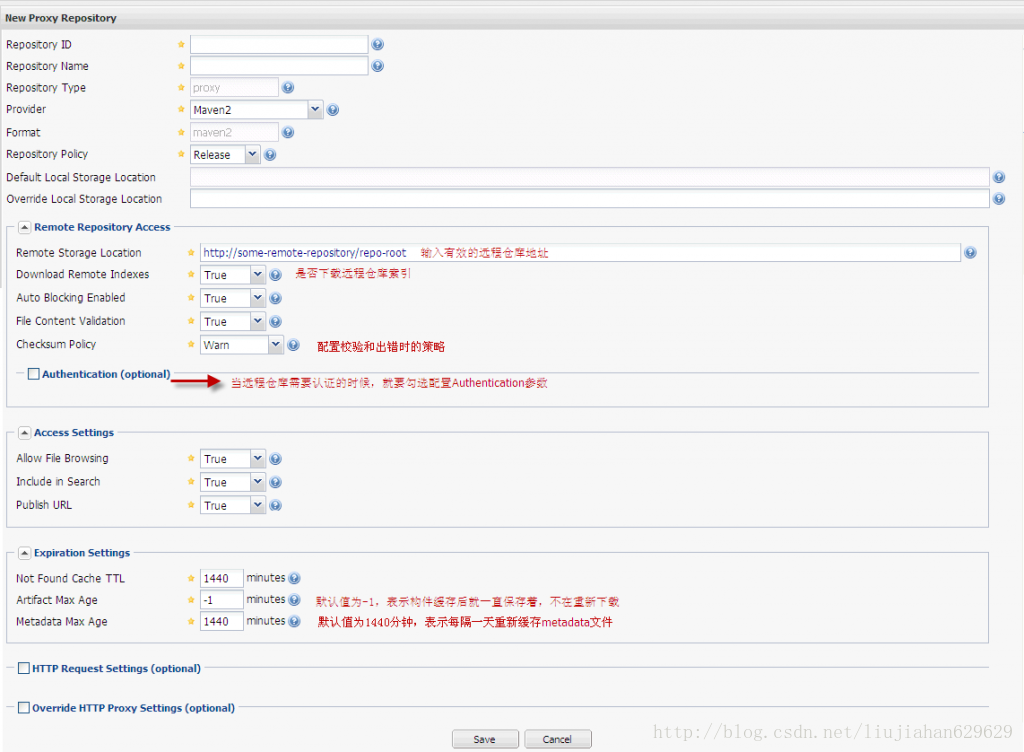 点击菜单栏上的Add按钮后选择Proxy Repository,看到如下所示配置界面: