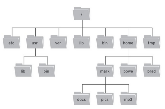 树是由若干个有限结点组成的一个具有层次关系的集合,每棵树有且仅有一个根,比如在图中,最上面的结点就是树的根结点。例子里的“/”、“etc”、“usr”、“lib”等等都是这棵树上的结点,其中“/”是树的根结点。