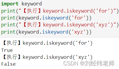 print("【执行】keyword.iskeyword('for')")
