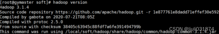4.测试Hadoop环境是否配置成功,输入 hadoop version 查看