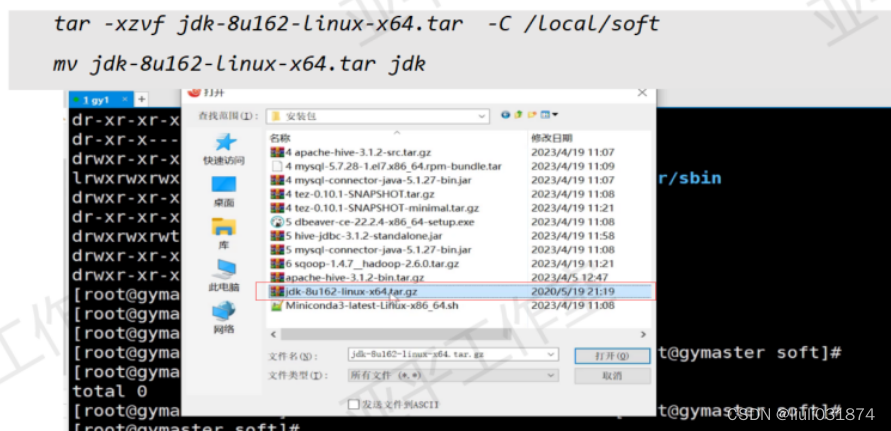 2.将下载好的jdk压缩包上传在虚拟机新建的文件夹里,用 rz 命令上传然后用以下命令解压