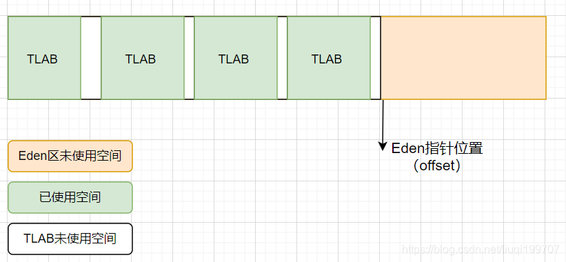 - 每个线程创建都会分配一块空间区域(TLAB区域),它包含在Eden区域。