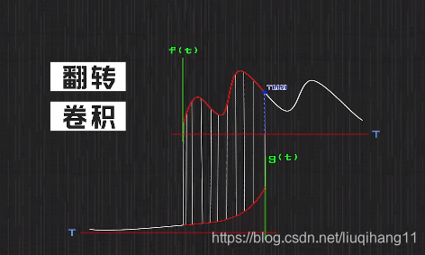 我们注意到,这就是一个卷积计算公式 。此外,图1表示f(t)与g(t)对应关系的连线并不美观,下面将g(t)的图像左右翻转一波便可得到以下对应关系: