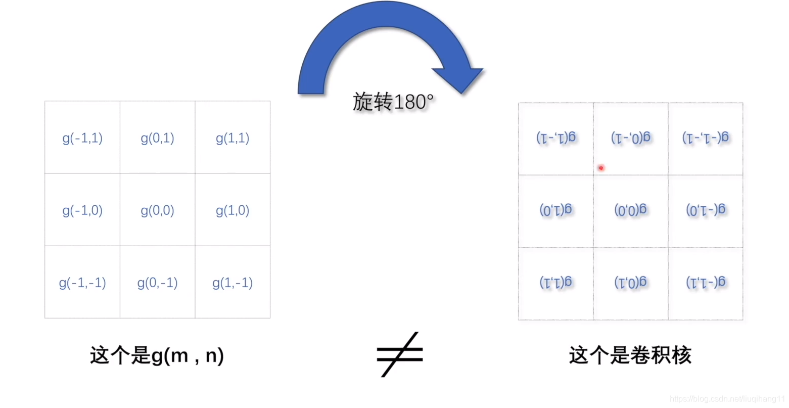 与之前的卷积公式不同,像素是一个一个的离散点,因此需要将积分符号改为求和符号(此时的卷积从数学上应该叫做卷和):