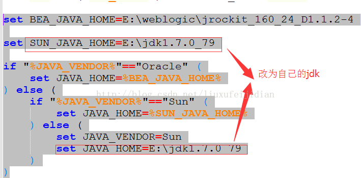 WebLogic 11gR1默认是支持jdk1.6的 我们可以进入到E:\weblogic\user_projects\domains\base_domain\bin中的修改setDomainEnv.cmd文件
