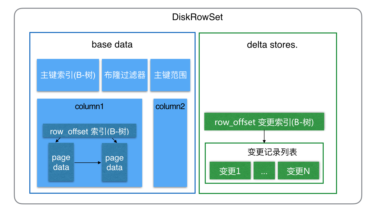 首先我们从 KUDU 的 DiskRowSet 数据结构上分析: