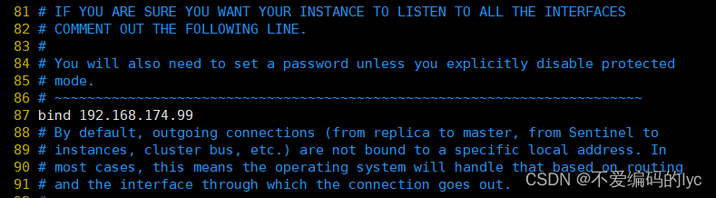修改第87行 bind 后面换成你的虚拟机ip地址