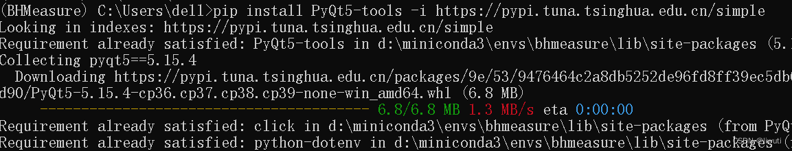 若未安装,输入pip install pyqt5 -i https://pypi.tuna.tsinghua.edu.cn/simple以安装