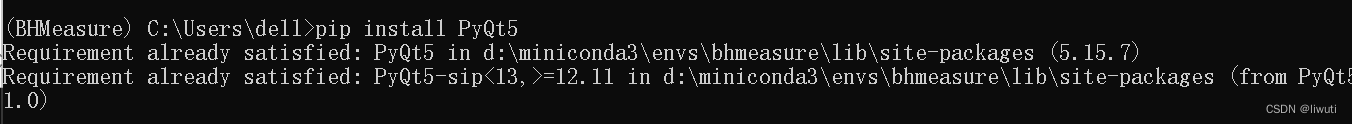 (1)查看是否安装PyQt5:输入pip install PyQt5