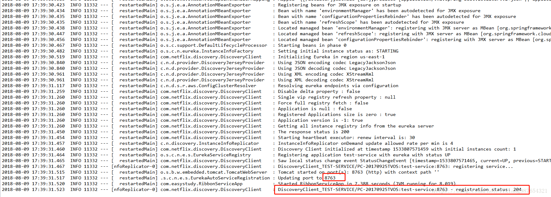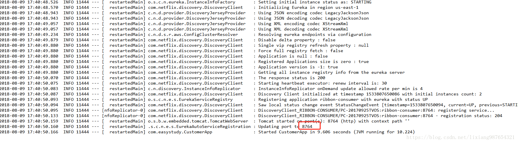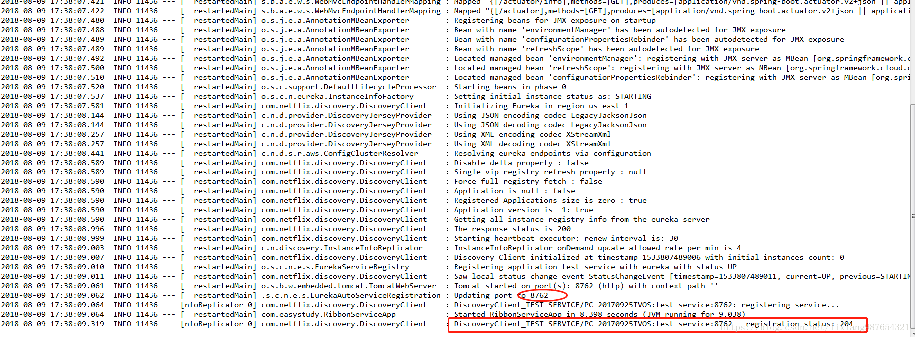 可以看到TEST-SERVICE服务有2机器分别对应服务名和端口为8762和8763,RIBBON-CONSUMER有一台机器对应服务端口8764;
