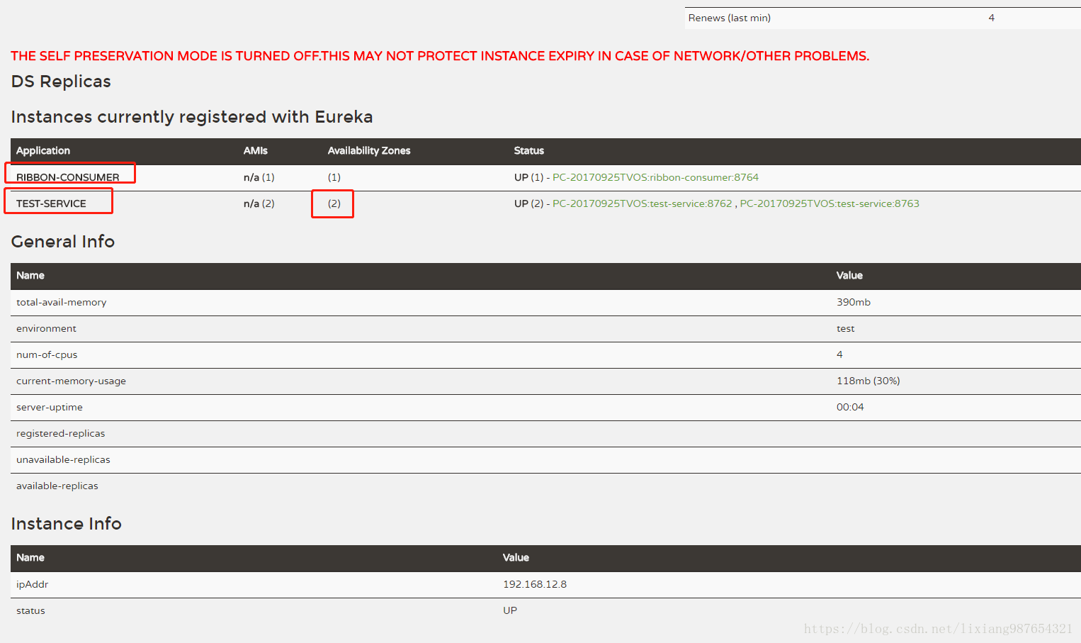 (5)访问eureka后台服务,查看test-service机器数量和状态