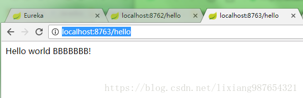 注意:spring.application.name注册到eureka的同名的服务test-service,都提供hello服务。