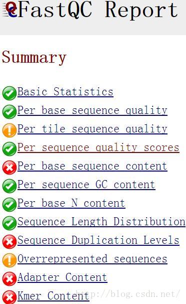 如图红叉部分是我们进行质量控制的关键,如Per base sequence content,现在是这样的