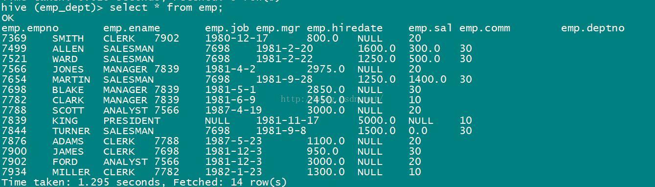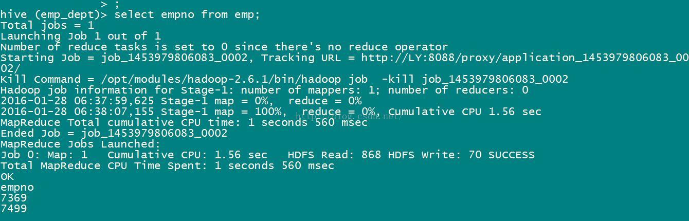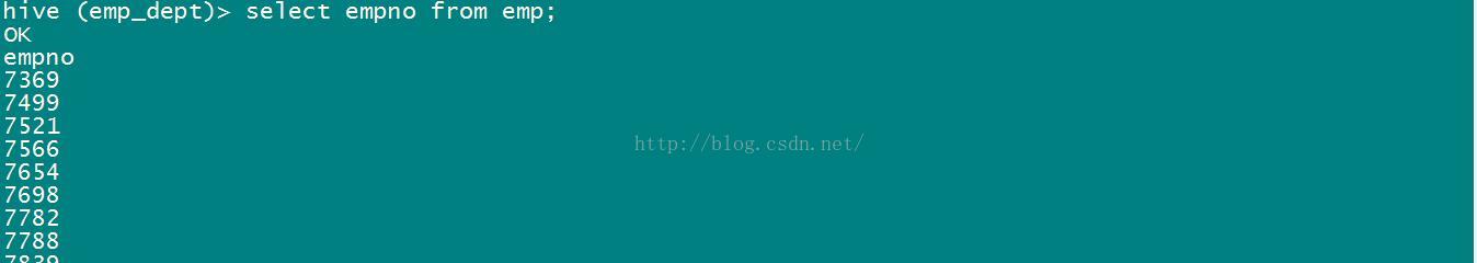select empno from emp;//mr应用程序