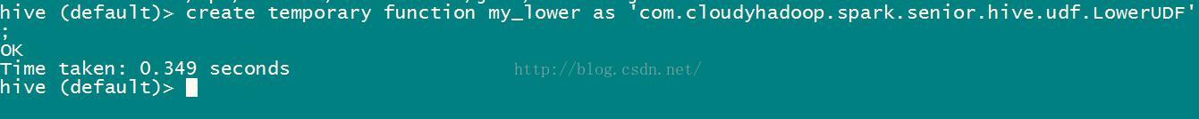 create temporary function my_lower as '...hive.udf.LowerUDF';