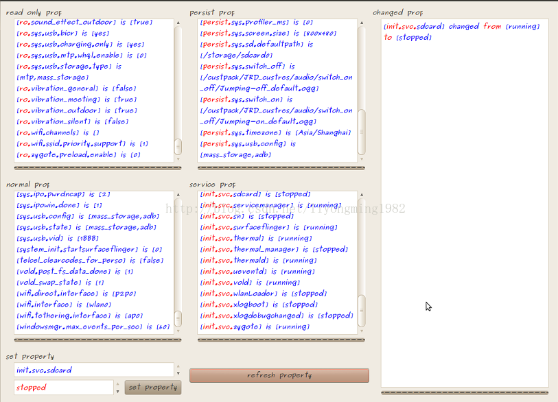8 监视android系统的属性 (只读/服务/可读写)及某个时间段哪个属性变化了: