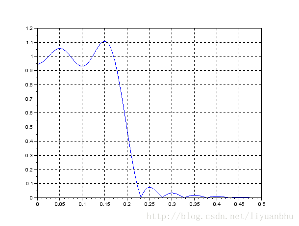 最后给一个测试代码,其中多项式p构成了一个FIR低通滤波器,这个低通滤波器是我用scilab 中的ffilt 函数设计的。