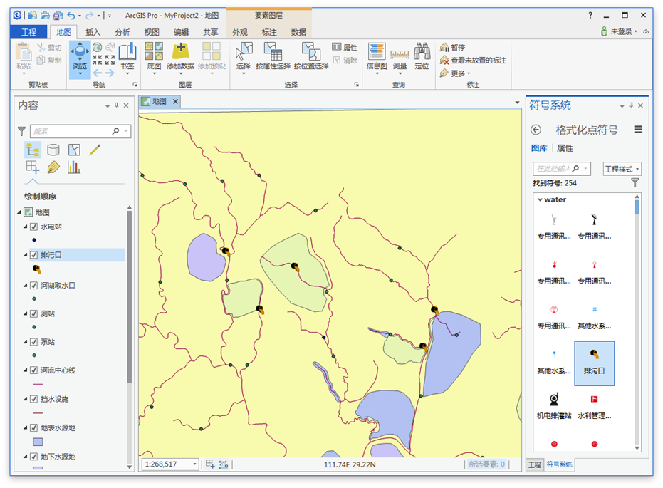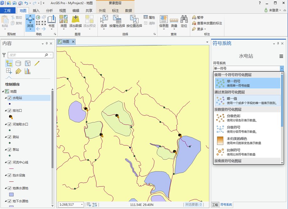 其他的符号选择方式跟ArcMap相差不大。整个配图的过程各种提示的操作还是相当人性化,对于新手来说,能够减少操作过程中来回查看帮助步骤。