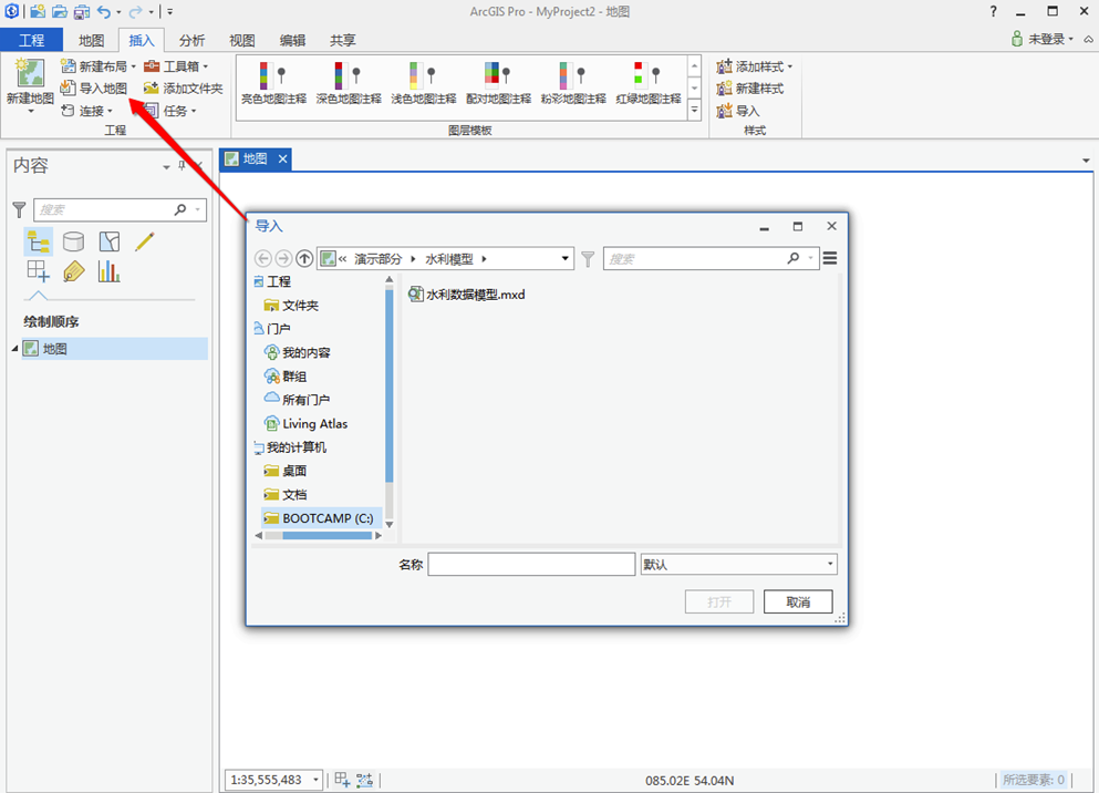 如果不需要这些网络底图,可以在左边的内容列表中使用右键将其删除。对于已有的地图文档,可以直接使用导入的方式进行加载,确保可以使用之前的成果。