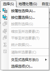 地图交互部分也是与工具进行对接,主要体现在菜单工具和右键菜单的功能。例如选择菜单的【按属性选择】和【按位置选择】