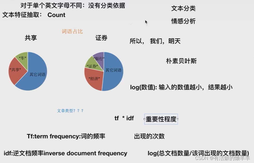 TF-IDF的主要思想是:如果某个词或短语在一篇文章中出现的概率高,并且在其他文章中很少出现,则认为此词或者短语具有很好的类别区分能力,适合用来分类。