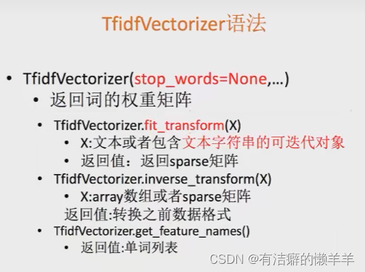 TfidfVectorizer语法