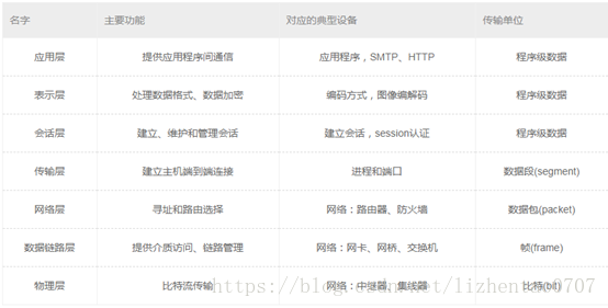 OSI七层网络模型中各层的名称及作用