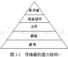 图3-1体现的是辅存、主存和缓存的三级存储系统结构,一般来说,“Cache-主存”层次用来弥补主存速度的不足;“主存-辅存”层次用来弥补主存容量的不足。