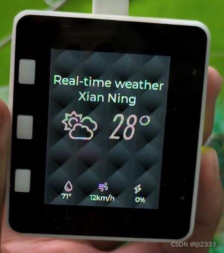 大概就做成了这个样子,然后按中间的按键就能实时播放当地的天气情况。