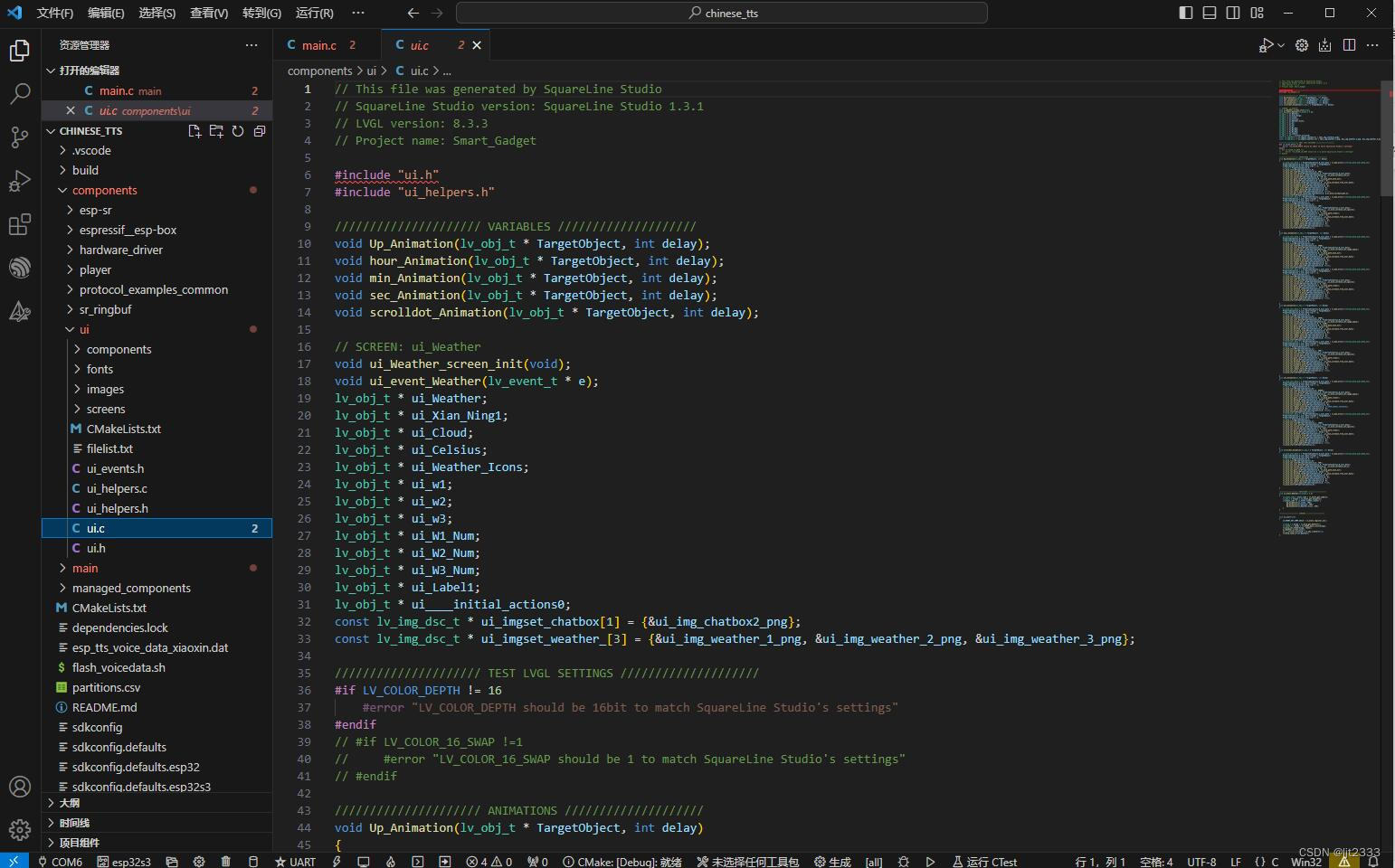 UI的话,生成的文件基本都是组件的位置大小啥的,具体的画面得去SquareLine里面自己调整布局。