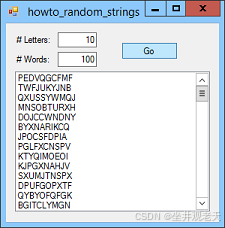 输入单词数和单词长度,然后单击“开始”。以下代码会生成随机单词并将其添加到ListBox中。