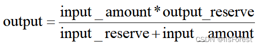 getInputPrice用于计算最终所兑换出来的币(ETH或代币)的数量,输入为两个币的储备量和用于兑换的币的数量,输出为能够兑换出来的币的数量。计算公式如下:
