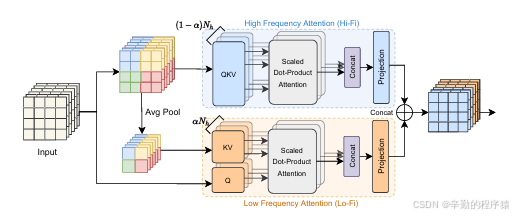 - 将注意力头分为高频组(Hi)和低频组(Lo),分别处理图像中的高频细节和低频结构信息。
