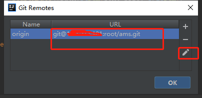 - 点击编辑按钮,修改URL点击OK就成功的更换了git地址。