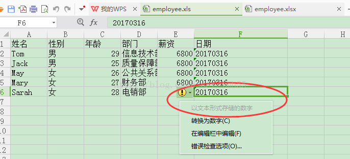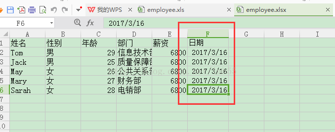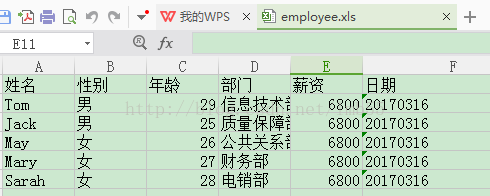 姓名 性别 年龄 部门 薪资 日期