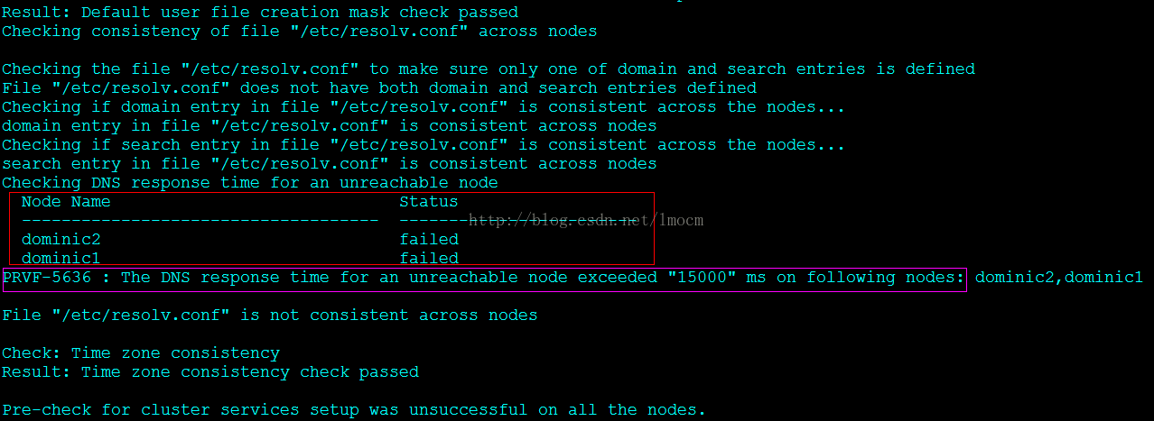 PRVF-5636 : The DNS response time for an unreachable node exceeded "15000" ms on following nodes: dominic2,dominic1