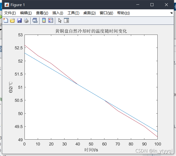 clear alla=0:10:100;b=[52.6 52.2 51.9 51.5 51.1 50.8 50.5 50.1 49.8 49.5 49.1];plot(a,b)hold onst1=75.1st2=50.8 %单位是摄氏度c=0.389*10^3 %单位是J/(Kg*℃)hp=[8.50 8.44 8.52 8.54 8.50];hp=hp*10^-3;dp=[130.10 130.16 130.18 130.24 130.24];dp=dp*10^-3;h...