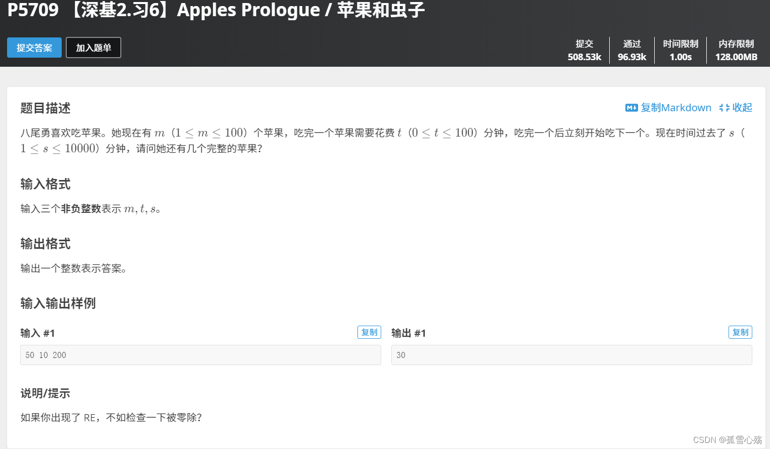 P5709 【深基2.习6】Apples Prologue / 苹果和虫子