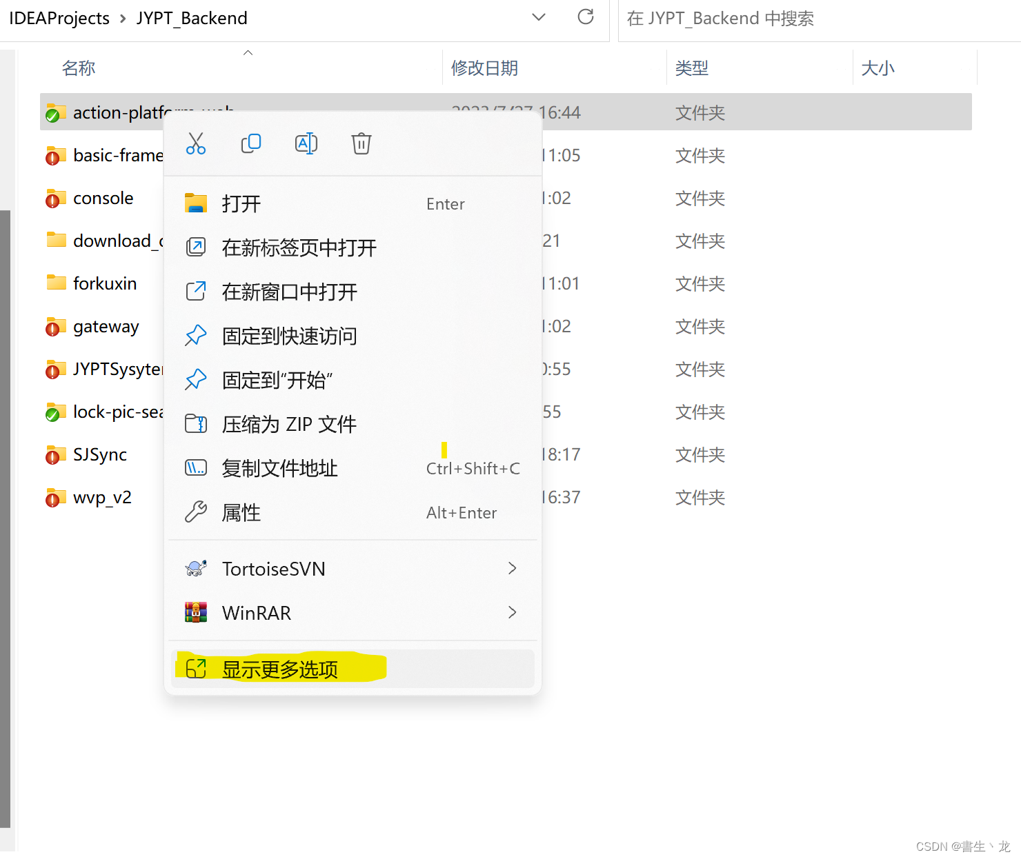 在TortoiseSVN的客户端上,右键点击你要修改的项目文件夹,“显示更多选项”, 选择“SVN Relocate“ 或者 “TortoiseSVN” ->"Relocate" 客户端版本不同可能会有细微的差别