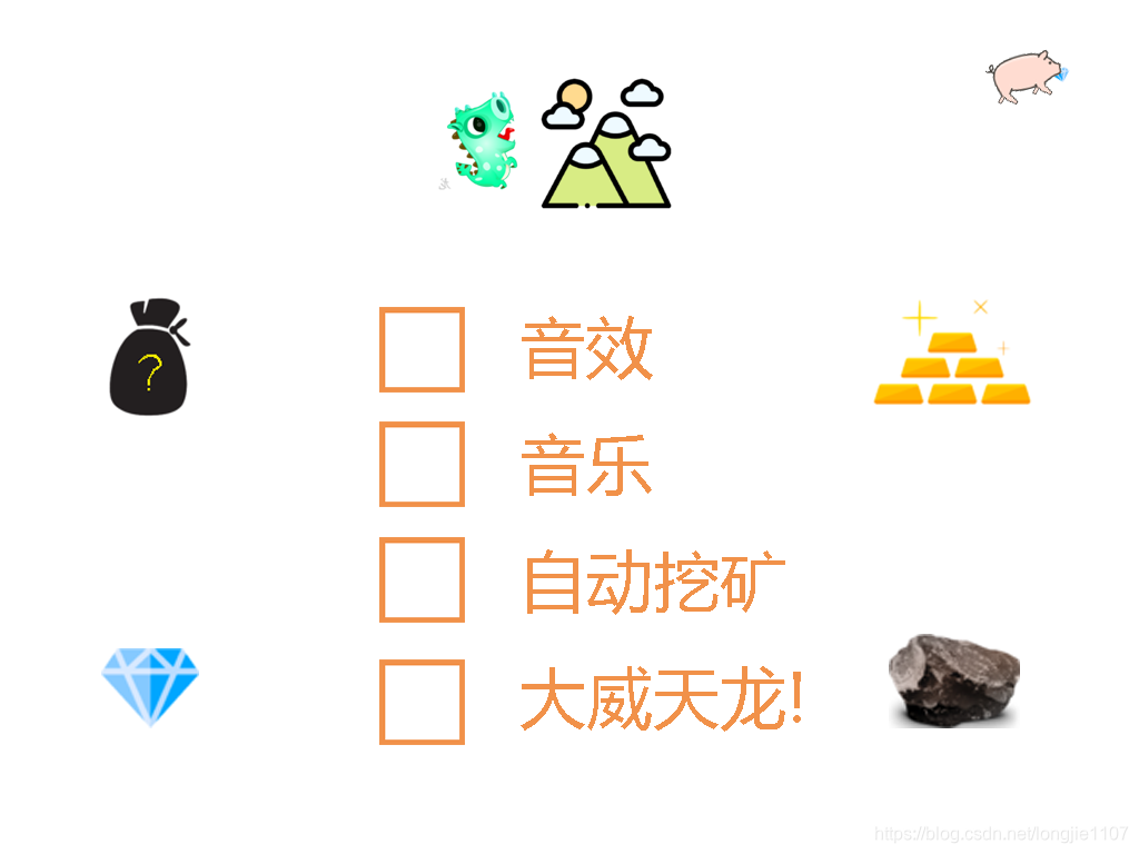 龙宝矿工是本人在"游戏开发"课程中的最终项目,断断续续用了两个星期完成。期间参考了课程中的案例代码,也查了挺多资料,感觉游戏开发的过程非常有趣,因为可以实时地感受自己努力的结果,很有成就感。但游戏开发也很烧脑,有时候晚上会想着明天要做哪一块的内容然后睡不着觉。特此记录一下开发的过程,希望能帮助到后来者。