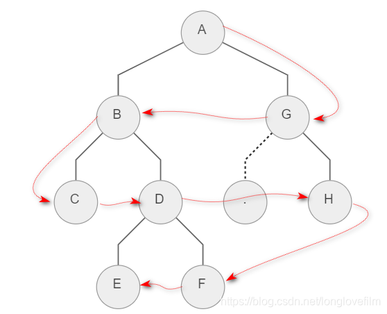 如上图所示的二叉树,A 是第一个访问的,然后顺序是 B、C,然后再是 D、E、F、G。