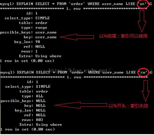 1.如果条件中有or,即使其中有条件带索引也不会使用(这也是为什么尽量少用or的原因)