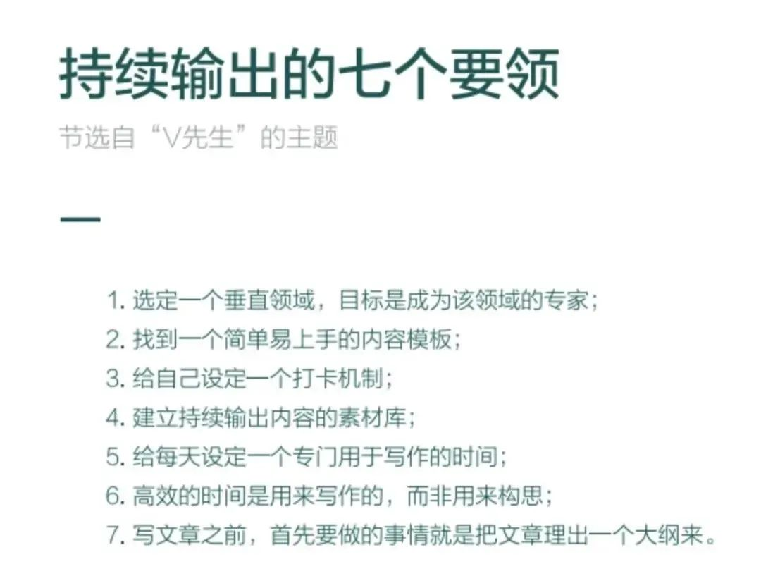 我们今天继续聊日更写作这个话题,下面是生财日历上持续输出的七个要领。