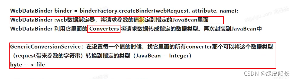 3.(从缓存中取得解析结果)解析器开始解析:1.取得参数名字;取得各种信息(如果要请求头,就请求头解析器取得,如果要参数就uri解析器解析取得),2.将解析的结果,返回(比如是路径参数解析器,就吧解析的uri结果并且放入到requst域之中(比如要id,直接从请求域中拿到id),然后返回给写的integer id)