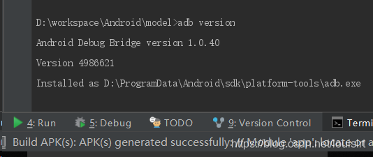 *是否增加成功可通过命令行或是AndroidStudio的terminal输入:adb version查看