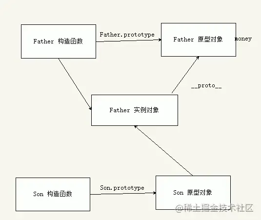 (2) 为 son 准备原型链连接 son.__proto__ = Father.prototype